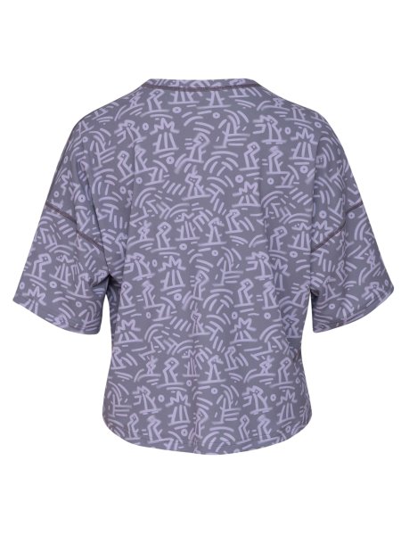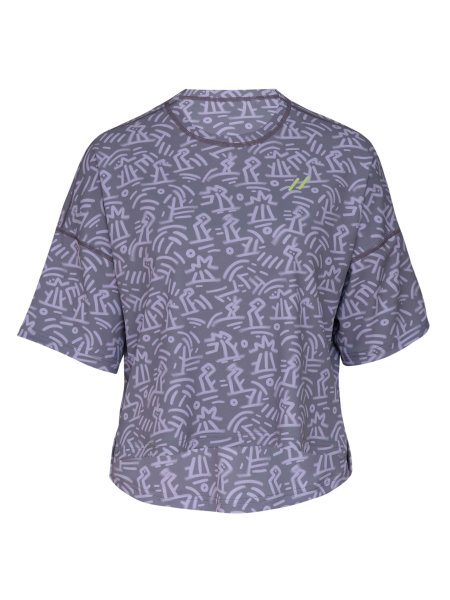 Locker geschnittenes und fliederfarben gemustertes UV Kurzarmshirt zum Wohlfühlen.