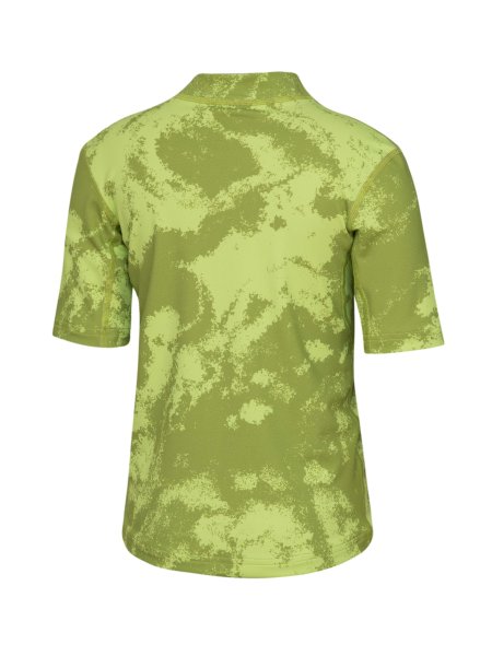 Gelbgrünes, in sich gemustertes UV Kurzarmshirt mit weißem Aloha Schriftzug.
